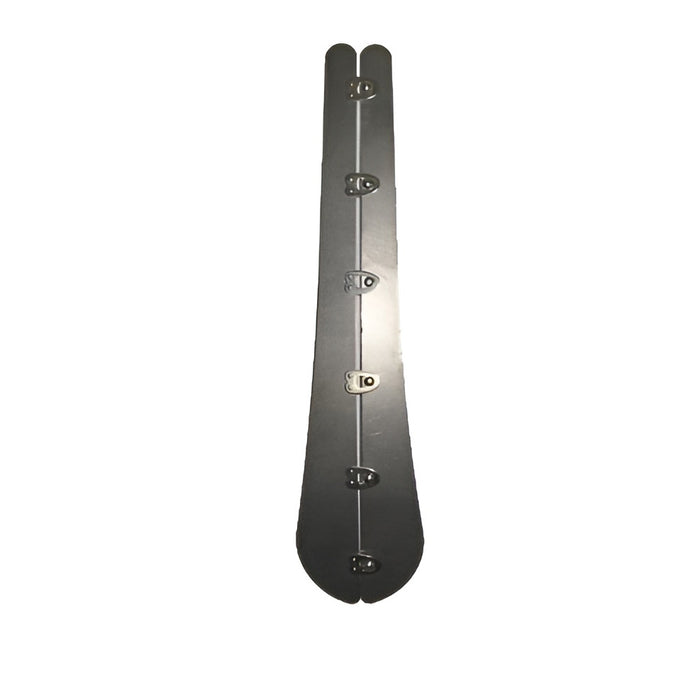 Flat stainless steel busk for corsetry. Wider and curved at the bottom for abdominal support. 30cm/12" long, 16-34mm wide per side.