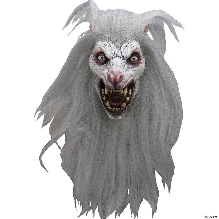 Unleash your inner beast. Intense looking full over-the-head mask werewolf creature mask with white hair attached for that extra realism. 100% latex. Individually hand painted for the best look. One size fits most adults.