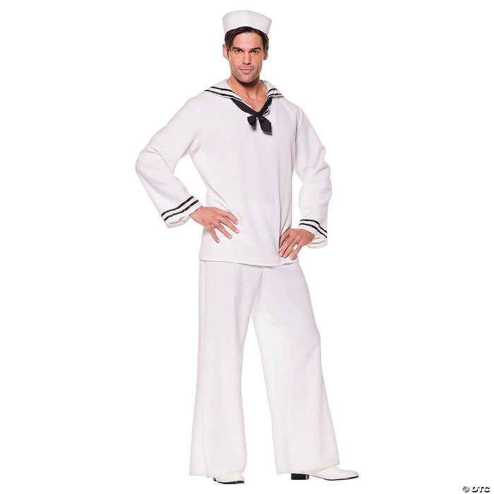 Well howdy handsome sailor! If you're looking for a great Halloween sailor costume, look no further! This traditional white V neck shirt with lay down collar knotted tie and sailor hat will having you looking like a hero in our Navy in no time.